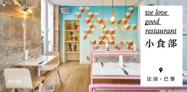 樓梯作為通往樓上空間的通道也被設(shè)計成一種假定的封閉空間,由白色金屬網(wǎng)制成,通過這個相對窄小的空間,步入鋪滿橡木色地板的二樓空間會感覺豁然開朗,與一樓的臨街而坐不同,樓上的空間相對更加安靜與私密,偶爾幾盆小小的植物的擺放也顯得格外重要,不僅平衡不同區(qū)域的環(huán)境和色彩,最重要的是,混合這里非自然材料的空間所帶來的壓力,讓你的心情愉悅——這是遇見食物最該有的心情!